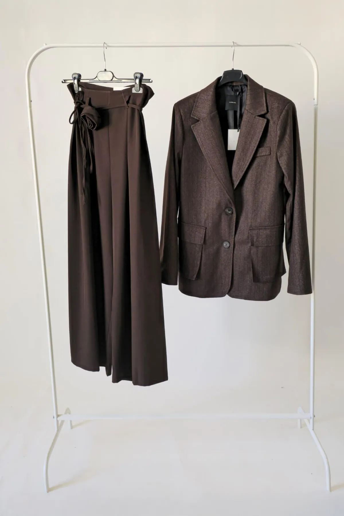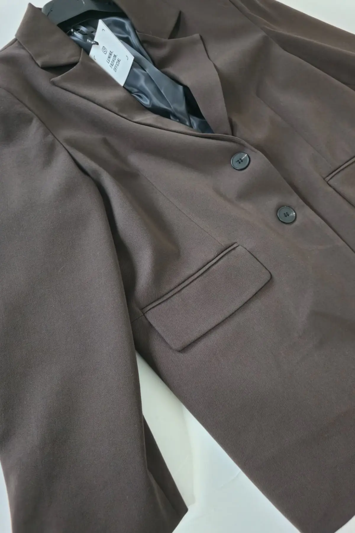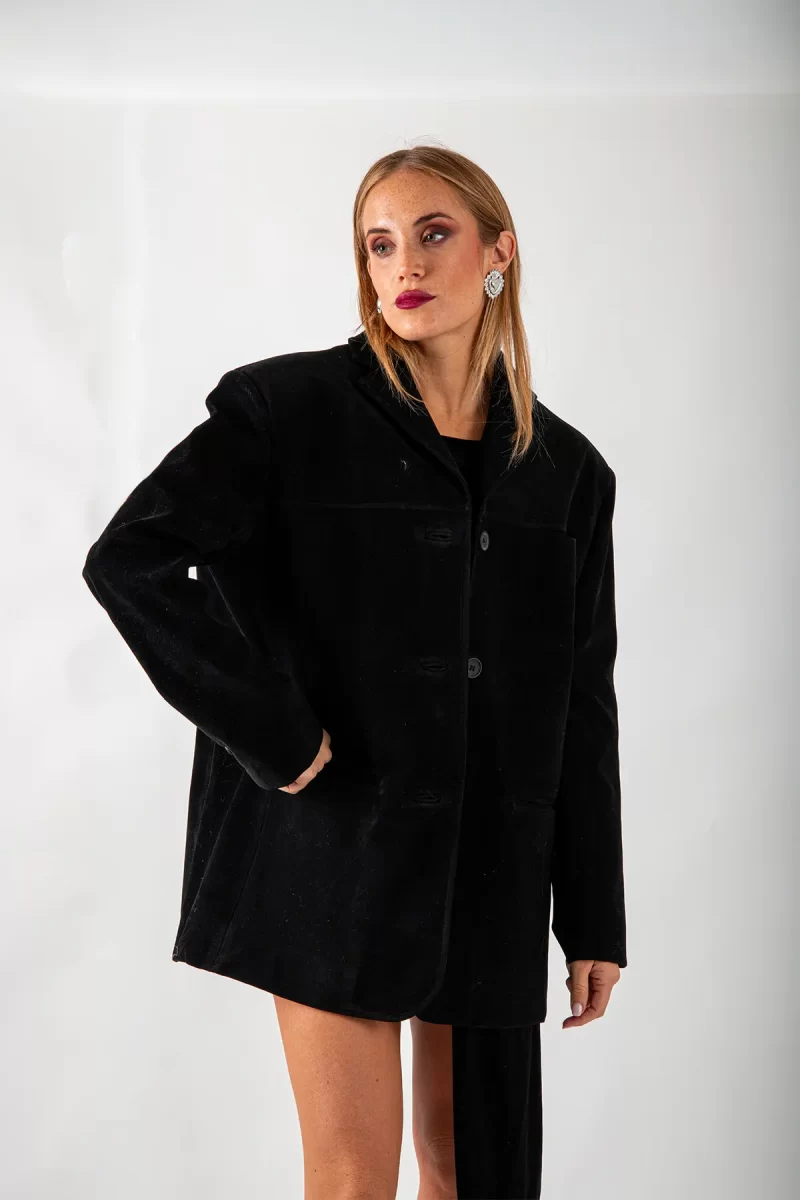 Giacca stile blazer con maniche lunghe e colletto a revers.Presenta due tasche con patta.Chiusura centrale tramite bottoni.Dettaglio di tessuto in pied-de-poule. Vestibilità oversize. Disponibile in taglia UNICA.